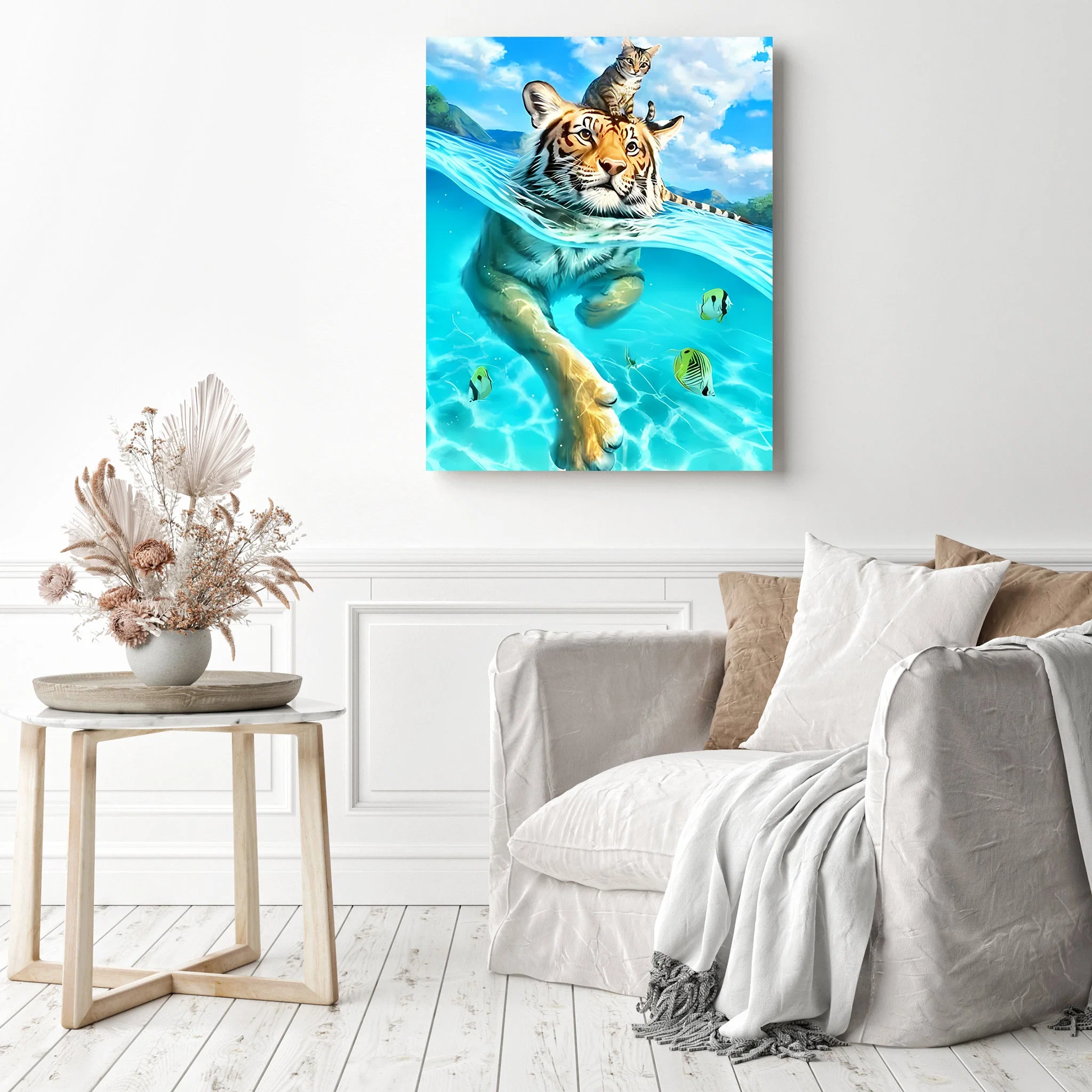 Tiger and Kitty in the Water | Diamond Painting