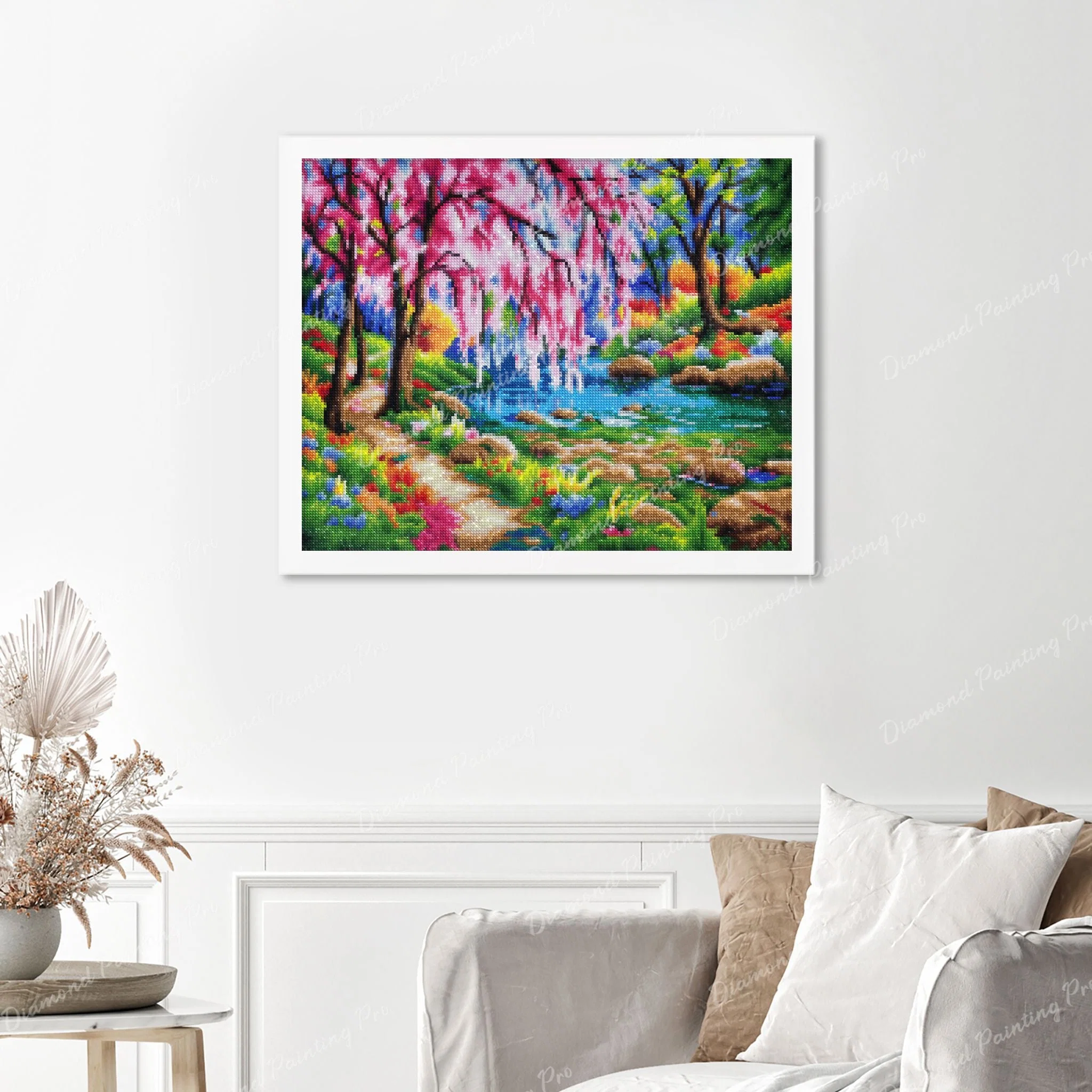 Cherry Blossom Tree Near River | Finished Diamond Painting—